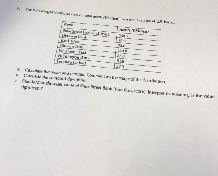 Solved 6 The Following Table Shows Data On Total Assets S Chegg Com